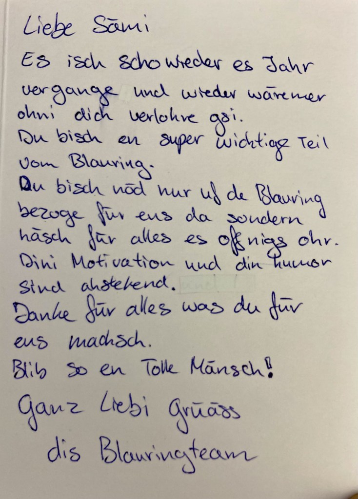 Kürzlich habe ich ein handgeschriebenes Kärtchen von den Blauringleiterinnen, die ich als Präses im Sommerlager begleite, erhalten. Diese kleine Geste zeigt mir, wie wichtig Dankbarkeit in unserem Alltag ist. Die Worte der Jugendlichen bestätigen, dass meine Unterstützung ankommt, was mich sehr freut.
